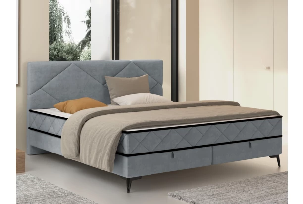 Moderná dvojlôžková posteľ s krásnym geometrickým prešivom zaujme v priestore každej spálne. Posteľ o veľkosti lôžka 180×200 cm je očalúnená zamatovo lesklou látkou vo farbe svetlo šedá, ktorá pôsobí luxusne a zároveň je odolná. Súčasťou tejto postele sú kvalitné vysoké matrace s taštičkovým jadrom a studenou penou, ktoré zaistia optimálny komfort počas spania. Lôžko vo vyššej polohe je obľúbené, pretože sa z neho lepšie vstáva. V dolnej časti postele sú ukryté praktické úložné priestory, ktoré sú prístupné z prednej strany – pohodlne do nich uschováte napríklad posteľnú bielizeň. Vďaka zvýšenej konštrukcii na nožičkách je údržba podlahy pod posteľou jednoduchšia a môžete využiť napríklad aj robotický vysávač.