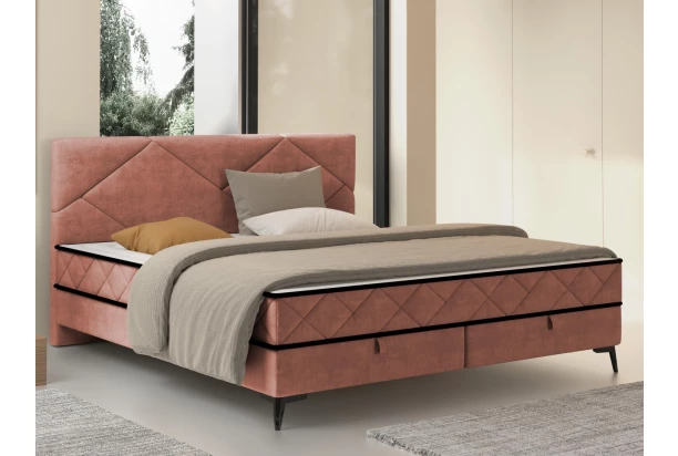 Moderná dvojlôžková posteľ s krásnym geometrickým prešivom zaujme v priestore každej spálne. Posteľ s veľkosťou lôžka 160×200 cm je očalúnená zamatovo lesklou látkou vo farbe lososová, ktorá pôsobí luxusne a zároveň je odolná. Súčasťou tejto postele sú kvalitné vysoké matrace s taštičkovým jadrom a studenou penou, ktoré zaistia optimálny komfort počas spania. Lôžko vo vyššej polohe je obľúbené, pretože sa z neho lepšie vstáva. V dolnej časti postele sú ukryté praktické úložné priestory, ktoré sú prístupné z prednej strany – pohodlne do nich uschováte napríklad posteľnú bielizeň. Vďaka zvýšenej konštrukcii na nožičkách je údržba podlahy pod posteľou jednoduchšia a môžete využiť napríklad aj robotický vysávač.