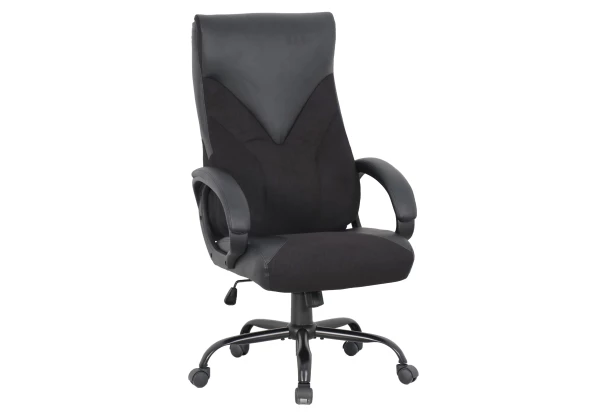 Kancelárske kreslo so zaobenými podrúčkami má pohodlne vypolstrovaný sedák a príjemný tvar operadla. Je očalúnené kombináciou čiernej ekokože a čiernej látky. Elegantné tvary dopĺňa prešitie. Okrem výškového nastavenia a pevnej polohy je možné využiť aj hojdaciu funkciu.