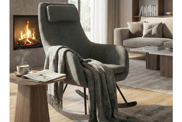 Elegantné hojdacie kreslo v modernom štýle ponúka príjemné pohodlie a zároveň bude pekným dizajnovým doplnkom nielen v priestore obývačky. Počas príjemného hojdania si môžete užívať chvíle domácej pohody, sledovať televíziu, čítať si, premýšľať alebo len tak v kľude relaxovať. Zaoblené kreslo je očalúnené tkaninou vo farbe stredne šedá a vďaka vysokému operadlu s mäkkým vankúšikom si pohodlne oprite aj oblasť hlavy. Podnož z kombinácie čierneho kovu a dreva zaistí stabilitu počas pri pohupovaní. Toto kreslo prakticky poslúži nielen v obývačke, ale aj napríklad v spálni, kde vytvorí útulné zákutia.