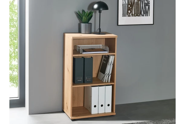 Nízky regál z programu Kanada – moderný nábytok v drevodekoru dub artisan vytvorí príjemné prostredie, kde budete cítiť útulne. Rovné línie nábytku ľahko pasují do takmer moderného interiéru . Tento stojaci regál ponúka 3 otvorené priehradky s policiou, ktoré sú ideálne pre vystavenie kníh, dekorácií, zložiek a pracovných materiálov v pracovni.