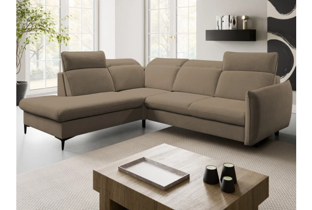 Trendová rohová sedačka s praktickou funkciou rozkladu a úložným priestorom pod otomanom. Komfortné sedenie je doplnené polohovateľnými opierkami, ktoré si môžete ľubovoľne nastavovať podľa aktuálnej potreby. Moderný členitý dizajn sedačky pripomína na pohľad vankúše, ktoré priam lákajú na pohodlné posedenie. Vďaka vyššej podnoži môžete počas upratovania využiť napríklad aj robotický vysávač. Tento variant sedačky s otomanom vpravo tvorí pravý roh a je očalúnený jemne štruktúrovanou látkou vo farbe stredne hnedá, ktorá je príjemne mäkká a zároveň odolná.