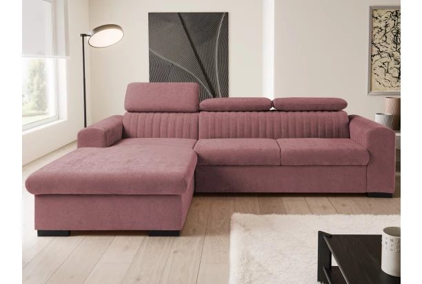 Moderná rohová sedačka zaujme na pohľad štýlovým prešivom, ktorý zvýrazňuje jej tvary. Komfortné sedenie dopĺňajú polohovateľné chrbtové opierky, s ktorými si je možné prispôsobiť pohodlie podľa aktuálnej potreby. Sedačka je očalúnená odolnou látkou vo farbe staroružová, ktorá sa vyznačuje jemnou, príjemne mäkkou a hladkou štruktúrou. Rohová sedacia súprava tvorí ľavý roh a pod otomanom nájdete praktický úložný priestor. Počas relaxácie môžete využiť aj funkciu rozkladu na lôžko pre príležitostné spanie, ktoré ocenia napríklad aj vaša návšteva.