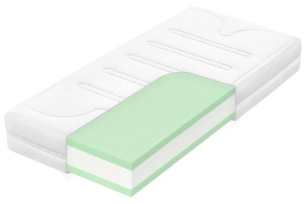 - stredová vrstva: taštičkové pružiny (cca 400 ks), 7 zón, vysoká bodová elasticita, dokonale kopíruje a podopiera telo v každom bode, optimálna opora tela