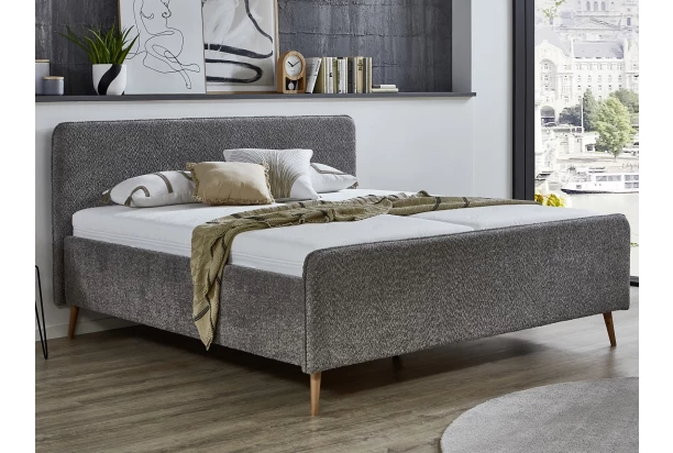 Čalúnená posteľ v obľúbenom škandinávskom štýle má zaoblený dizajn čela a vytvorí útulné prostredie v priestore vašej spálne. Posteľ je očalúnená príjemne mäkkou štruktúrovanou látkou vo farbe stredne šedá, ktorá zaujme na pohľad a dokreslí útulnú atmosféru v interiéri. Zaoblené tvary čela navyše zvýrazňujú elegantné látkové lemy. Stabilnú konštrukciu postele dopĺňajú nohy zo svetlého masívneho dreva. Lôžko s veľkosťou 140×200 cm má pevný bočný rám s možnosťou nastavenia výšky lôžka na základe vašej potreby. Túto štýlovú posteľ si tak môžete ľahko doplniť roštmi a matracmi pre váš každodenný komfortný spánok.