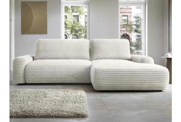 Rohová sedačka Cord, smotanovo biela štruktúrovaná látka, pravý roh