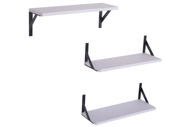 Sada 3 kusov políc o šírke 45 cm je vyrobená v bielej farbe so zavesením na čiernej kovovej konzole. Police tak vyzerajú veľmi moderne. Konzoly je možné univerzálne namontovať na hornú alebo dolnú stranu police.