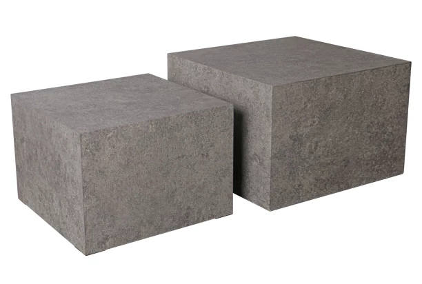 Sada 2 kusov rôzne veľkých stolíkov v tvare štvorca je vyrobená v imitácii šedého kameňa a v modernom interiéri bude tvoriť atraktívnu spoločnú kompozíciu vedľa sedačky. Stolíky môžete umiestniť vedľa seba alebo ich ľubovoľne rozmiestniť v interiéri. Malý stolík môžete využiť aj samostatne na odkladanie ovládača, smartfónu, na umiestnenie lampičky alebo napríklad kvetov – záleží na vás.