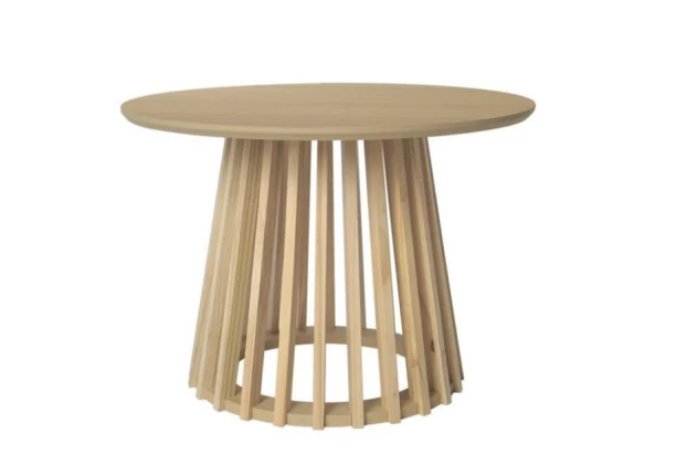 Atraktívny okrúhly odkladací stolík v dekore svetlý jaseň má priemer 50 cm a zaujme lamelovým dizajnom podstavy. Podstava v tvare kužeľa zaisťuje stabilitu počas každodenného využívania a zároveň pôsobí v interiéri vzdušným dojmom. Tento krásny elegantný stolík sa tak stane štýlovým doplnkom vašej obývačky.
