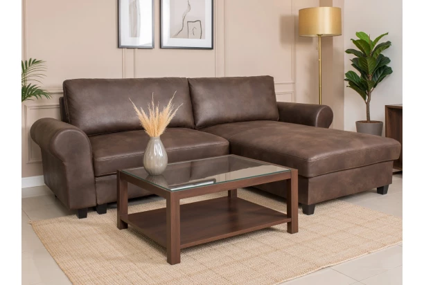 Rohová sedacia súprava zaujme svojim elegantným dizajnom a zároveň praktickým prevedením, ktoré oceníte pri každodennom používaní. Vďaka zaobleným podrúčkam pôsobí sedačka jemne a harmonicky, zatiaľ čo jej rozmery sú navrhnuté tak, aby skvele zapadla aj do menších obývacích izieb. Veľkou výhodou je univerzálne prevedenie – otoman je možné pri montáži umiestniť na pravú aj ľavú stranu, takže si ľahko vytvoríte roh presne podľa dispozície vášho interiéru. Sedačka tak ponúka flexibilitu a prispôsobí sa vašim potrebám. Poťah z atraktívnej látky vo vintage optike kože dodáva sedacej súprave jedinečný charakter a zaujme na pohľad. Vďaka tomu sa skvele kombinuje napríklad s rôznymi drevodekormi a prirodzenými materiálmi v interiéri, kde vytvorí štýlovú a útulnú atmosféru. Okrem pohodlného sedenia ponúka aj praktické funkcie. Súčasťou je úložný priestor na uschovanie diek, vankúšov alebo ďalších vecí a nechýba ani rozkladací mechanizmus, vďaka ktorému ľahko vytvoríte lôžko vhodné na príležitostné prespanie alebo pohodové chvíle domáceho odpočinku.