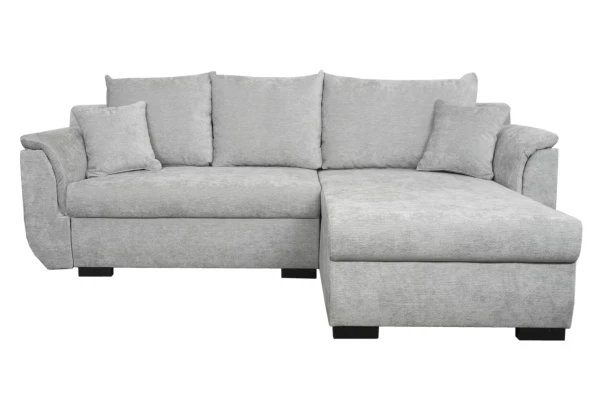Elegantná rohová sedačka ponúka príjemné sedenie, veľké vankúše a komfortne mäkké zaoblené podrúčky. Praktický úložný priestor pod sedákom využijete napríklad na uschovanie deky, vankúšov alebo sezónnych vecí. Oceníte aj rozkladaciu funkciu, ktorú využijete počas relaxácie alebo na príležitostné spanie. Sedačka je očalúnená mäkkučkou ženilkovou látkou vo farbe svetlo šedá. Táto rohová sedacia súprava je možné univerzálne zostaviť ako pravý alebo ľavý roh. Rozmerovo pasuje aj do menšieho priestoru, kde vytvorí príjemne útulné zákutia pre chvíle pohody.