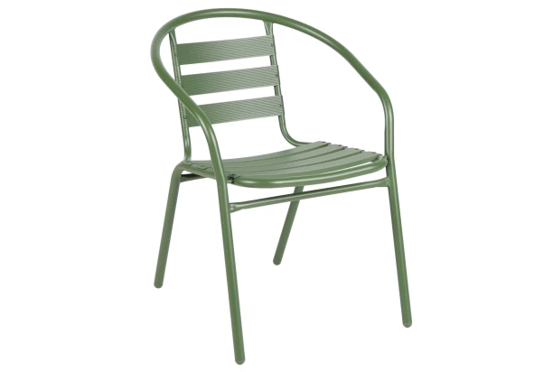 Záhradná stolička má pohodlný tvar, stabilnú konštrukciu zo zeleného kovu a skvele tak splynie s vonkajším prostredím. Hodí sa na záhradu aj balkón a ľahko ju skombinujete s ostatným kovovým nábytkom. Pri tejto stoličke oceníte aj možnosť stohovania viacerých kusov na seba – ušetríte tak okolitý priestor pri skladovaní.