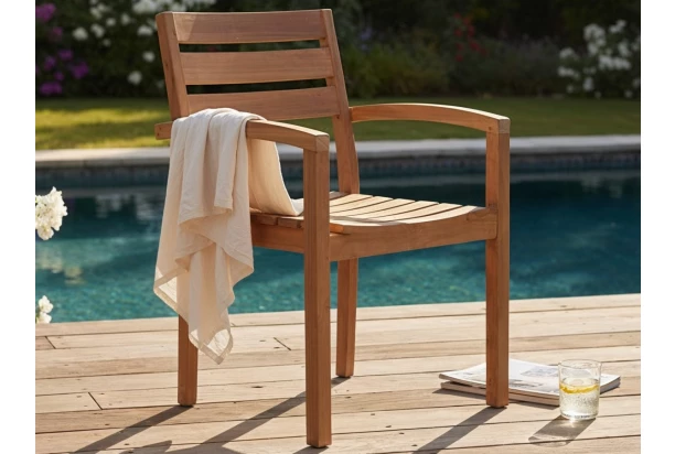 Pohodlne tvarovaná záhradná stolička s podrúčkami je vyrobená z teakového dreva a je ideálna voľbu pre tých, ktorí hľadajú spojenie prírodnej krásy, funkčnosti a dlhej životnosti. Táto záhradná jedálenská stolička poslúži buď samostatne alebo spoločne pri jedálenskom stole, kde si príjemne posedíte pri raňajkách, obeda, večere alebo letnom grilovaní s priateľmi. Teakové drevo je cenené pre svoju mimoriadnu tvrdosť, vysokú odolnosť voči vlhkosti, slnečnému žiareniu i zmenám teplôt, vďaka tomu ich sa vyznačuje dlhou životnosťou a to aj pri pravidelnom vonkajšom používaní.