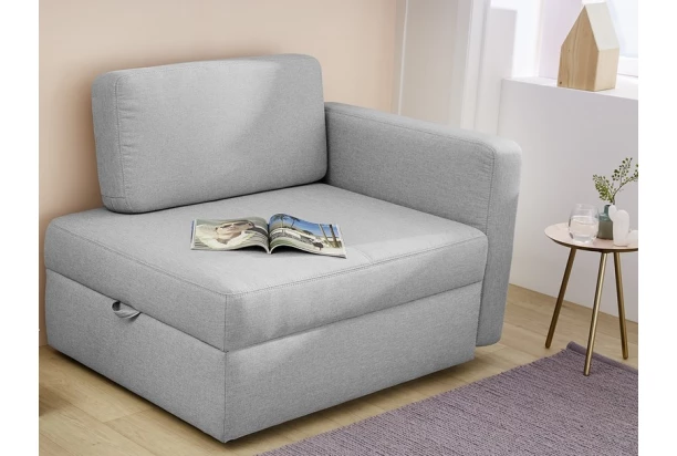Praktické rozkladacie kreslo oceníte vy aj vaša návšteva – ľahko rozložíte na pohodlné lôžko pre hostí. Očalúnené svetlo šedou tkaninou a doplnené oporným vankúšom. Úložný priestor pod sedákom využijete napríklad na uschovanie posteľnej bielizne alebo sezónnych vecí.