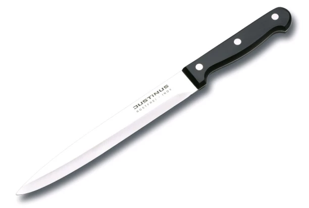 Kuchynský nôž na šunku v klasickom prevedení, má nerezovú štíhlu čepeľ s dĺžkou 20 cm. Je ideálny najmä pre krájanie pečienky, šunky a údenín.