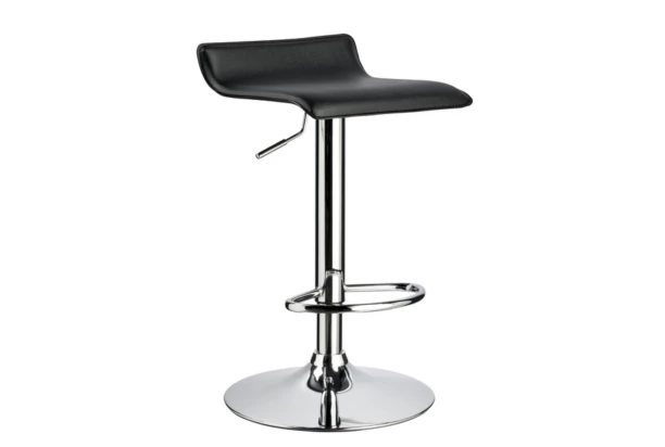 Minimalistická stolička k modernému baru. Chrómovo lesklá konštrukcia s funkciou výškového nastavenia a sedák v tvare vlnovky.