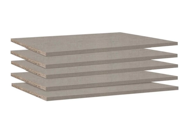 Set políc o šírke 88 cm pre vnútorné vybavenie skríň s posuvnými dverami. Set obsahuje 5 kusov políc. Police je možné kombinovať len so skriňami, u ktorých je táto polica uvedená ako združený produkt.