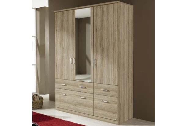 Šatník zo série Bremen je obľúbený pre svoju praktickosť a dobrú úroveň spracovania. Vyrobená v dekore dub san remo. Ponúka úložný priestor, 3 otočné dvere, 1 zrkadlo a 6 praktických zásuviek o rôznych veľkostiach pre prehľadné ukladanie oblečenia, bielizne a doplnkov. Z jednotlivých elementov série Bremen môžete naviac zostaviť ľubovoľne veľkú šatňu a prispôsobiť si tak úložné priestory podľa individuálnych potrieb.