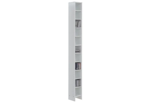 Vysoký regál v bielej farbe má univerzálne využitie. Desať vnútorných políc pre ukladanie knižiek, cédečiek alebo drobností.