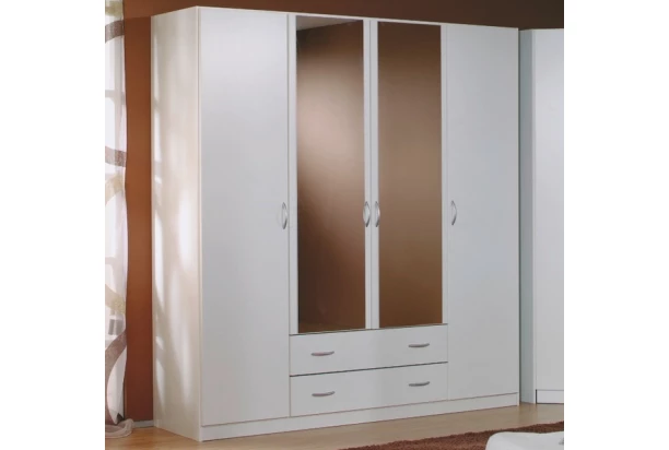 Šatníková skriňa z programu Case je vyrobená v celobielom prevedení a prináša do domácnosti jednoduchú eleganciu a funkčnosť. Konštrukcia o šírke 181 cm obsahuje 4 dvere, 2 zrkadlá a 2 zásuvky. Z jednotlivých skríň a nadstavcov možno zostaviť celú praktickú a prehľadne usporiadanú šatňu.