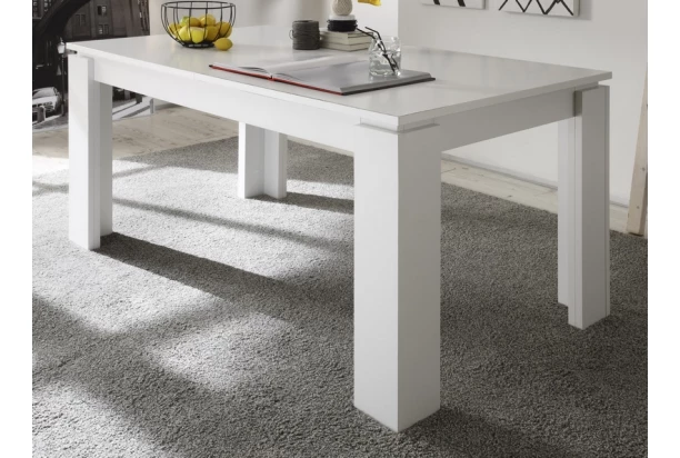 Priestranný jedálenský stôl Universal má funkciu rozkladu, pevnú konštrukciu s obľúbenou optikou širokých rámov. Pre moderné i klasicky zariadený interiér. Vyrobený v bielej farbe.