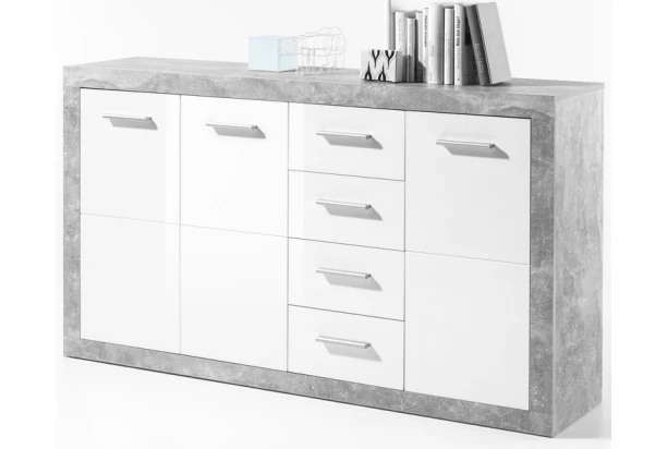 Komoda Stone 152 cm, betón/biela