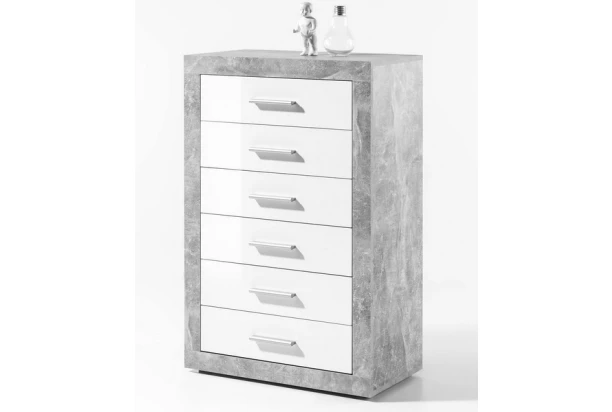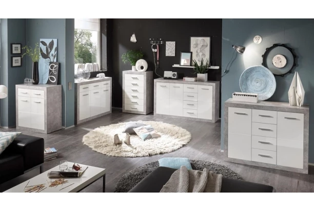 Nechajte sa inšpirovať módnymi trendmi v kombinácii imitácie betónu a bielej farby. Nábytok tak dokonale doplní moderne zariadený interiér.