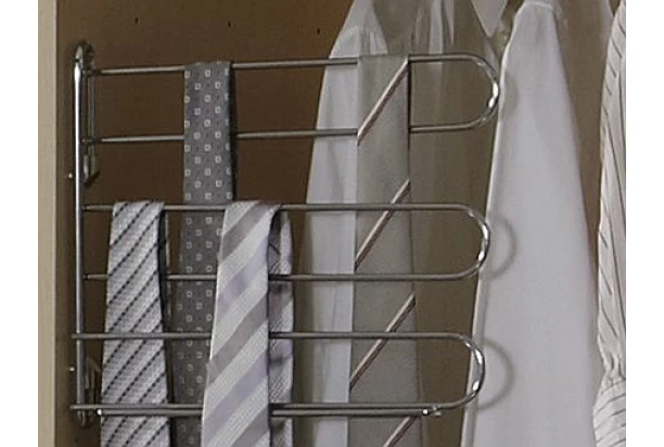 S praktickým držiakom na kravaty a opasky z kovu budete mať vždy všetko po ruke. Pre uchytenie do vnútorného priestoru skrine.