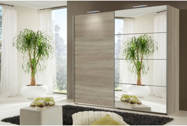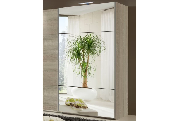 Posuvné dvere ku korpusu skrine šírky 225 cm/výšky 208 cm zo série Easy Plus. V prevedení so zrkadlom. Tieto samostatné posuvné dvere so šírkou 112 cm slúžia na osadenie na korpus skrine Easy Plus. Kombináciou jednotlivých dverí si tak môžete vytvoriť design skrine podľa vlastnej potreby a vkusu.