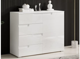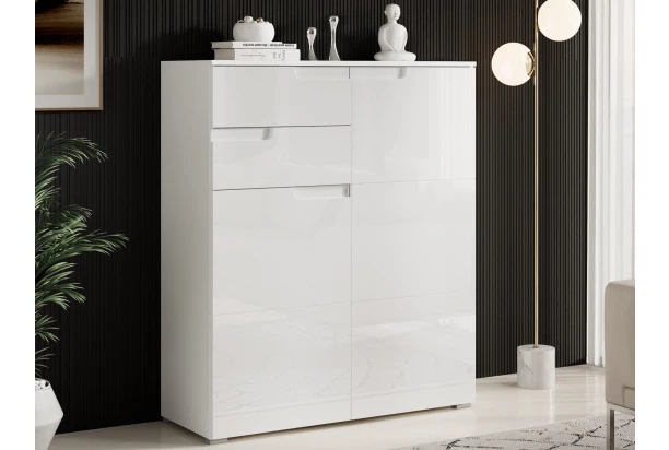 Vyššia skrinka z rady Spice sa vyznačuje lesklými bielymi povrchmi s extravagantnou profiláciou a ideálne sa hodí do nadčasovo zariadeného bytu. Obsahuje 2 zásuvky a 2 dvere.