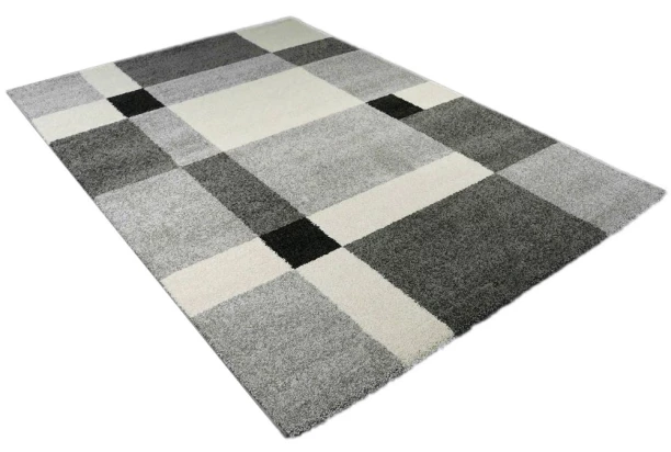 Koberec o rozmere 80×150 cm v šedom prevedení s motívom štvorcov a obdĺžnikov sa dokonale hodí do moderne zariadeného bytu.