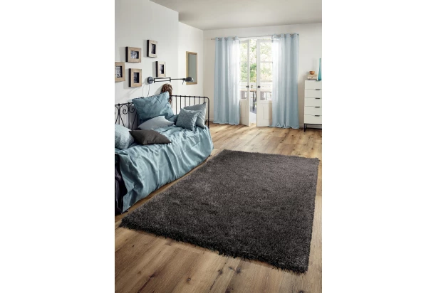 Koberec Shaggy s dlhým vlasom je trendom dnešných bytov. Farba sivá. Rozmer 120×170 cm.