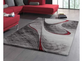 Štýlový koberec s rozmerom 160×230 cm je v šedom prevedení, ktoré dopĺňa červená farba. Tento koberec je príjemný na dotyk a skvele vynikne v obývacej izbe.