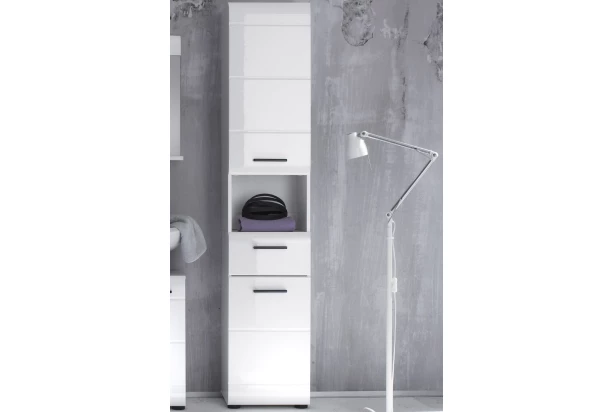 Vysoká kúpeľňová skrinka Skin, lesklá biela
