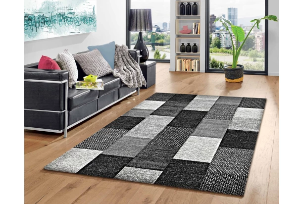 Originálny vzor koberca opticky pripomína textúru tkaniny. V kombinácii čierno-bielo-šedej farby. Rozmer 80×150 cm.