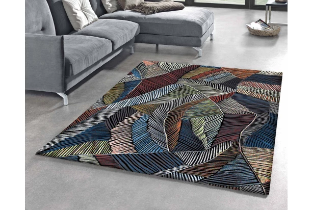 Koberec s rozmerom 160×230 cm s pôsobivým vzorom pripomínajúci farebné lístie ozvláštni Váš domov a dodá mu moderný vzhľad.