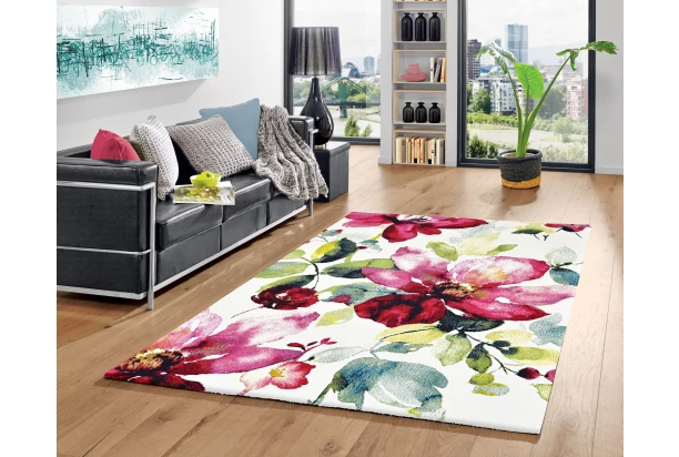 Obdĺžnikový koberec s rozmerom 80×150 cm s nízkym a príjemne hustým vlasom. Nádherný kvetinový motív v kombinácii s pôsobivými akcentmi farieb vynikne na podlahe každého moderného interiéru.