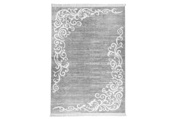 Elegantný šedý koberec s bielym ornamentom na okrajoch je príjemne mäkký a vo Vašom bývaní vytvorí noblesnú atmosféru. Rozmer 120×160 cm.