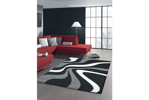Kreatívny vzor dodá šmrnc Vašej podlahe. Farba čierna / biela / šedá. Rozmer 160×230 cm.