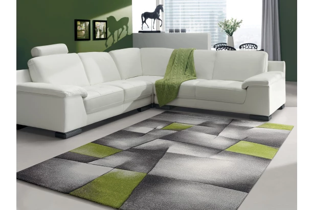 Zaujímavý geometrický motív koberca vás bude inšpirovať. V šedo-bielo-čierno-zelenej farbe. Rozmer 80×150 cm.