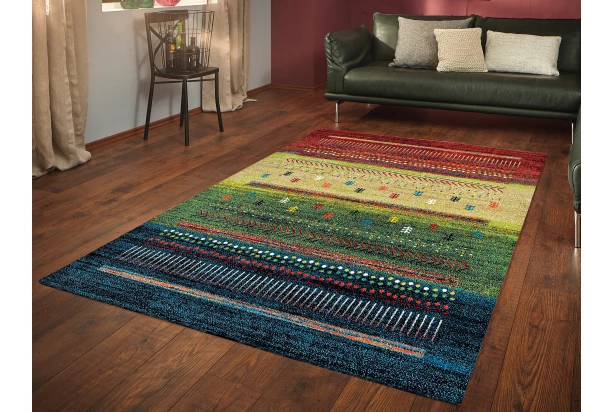Krásny pestrofarebný koberec je doplnený etnickými vzormi. Rozmer 160×230 cm.
