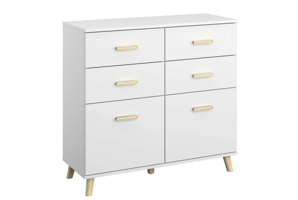 Komoda kombinovaná dvermi a zásuvkami o celkovej celkovou šírkou 93 cm z kolekcie Kolding v pôvabnom škandinávskom štýle, ktorý je obľúbený naprieč generáciami. Biele línie nábytku dopĺňajú prvky masívneho jaseňového dreva pre vytvorenie naozaj štýlovej atmosféry v priestore spálne alebo aj inej miestnosti.