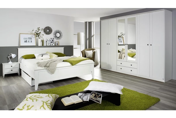 Šatníková skriňa so 6 otočnými dverami, zrkadlami a zásuvkami s celkovou šírkou 271 cm z kolekcie Rosenheim – vychutnajte si romantické čaro bieleho nábytku s nádychom vidieckeho štýlu. Dekoratívne rámy, univerzálnosť bielej farby aj kvalitné spracovanie prispievajú k vytvoreniu príjemnej atmosféry v priestore spálne.