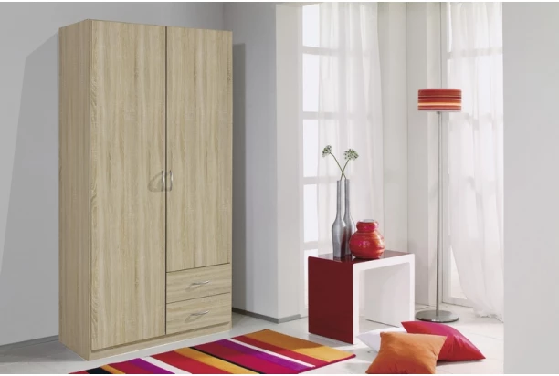 Šatníková skriňa z programu Case je vyrobená v dekore dub sonoma a prináša do domácnosti jednoduchú eleganciu a funkčnosť. Konštrukcia o šírke 91 cm obsahuje 2 dvere a 2 zásuvky. Z jednotlivých skríň a nadstavcov možno zostaviť celú praktickú a prehľadne usporiadanú šatníkovú skriňu.