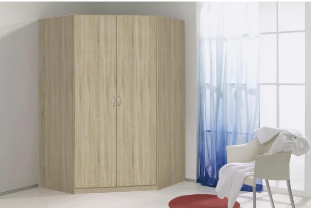 Rohová šatníková skriňa z programu Case je vyrobená v dekore dub sonoma a prináša do domácnosti jednoduchú eleganciu a funkčnosť. Konštrukcia o šírke 117 cm obsahuje 2 dvere a praktické vnútorné police. Z jednotlivých skríň a nadstavcov možno zostaviť celú praktickú a prehľadne usporiadanú šatňu.