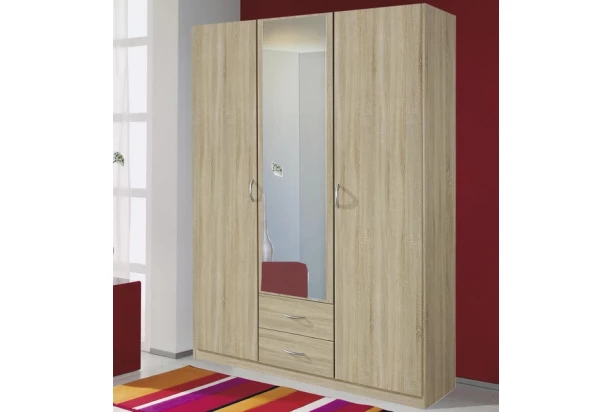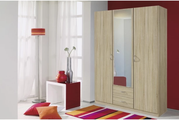 Šatníková skriňa z programu Case je vyrobená v dekore dub sonoma a prináša do domácnosti jednoduchú eleganciu a funkčnosť. Konštrukcia o šírke 136 cm obsahuje 3 dvere, 1 zrkadlo a 2 zásuvky. Z jednotlivých skríň a nadstavcov možno zostaviť celú praktickú a prehľadne usporiadanú šatníkovú skrinu.