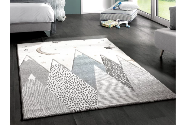 Detský koberec s hustým vlasom a motívom skalnatá krajina s hviezdami a mesiacom vynikne v každej detskej izbe. Rozmery 120×170 cm.