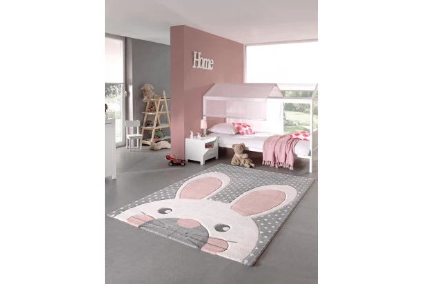 Krásny detský koberec s hustým vlasom a motívom zajačika vynikne v každej detskej izbe a poteší. Rozmer 120×170 cm.