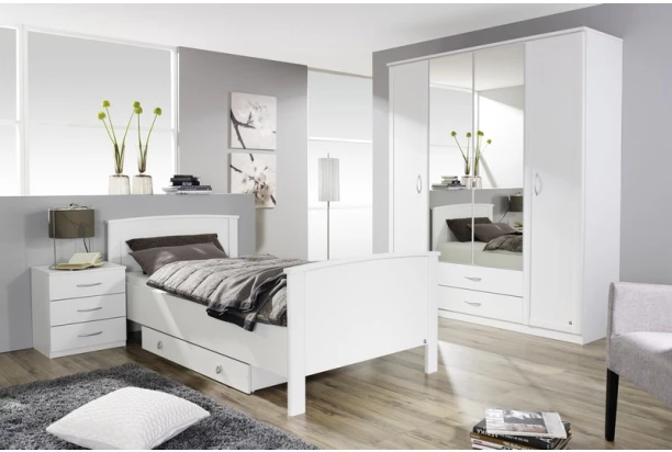 Šatníková skriňa so šírkou 181 cm zaujme elegantným štýlom s dekoratívnou profiláciou predných plôch. Otočné dvere, doplňujú veľké zrkadlá a praktické zásuvky. Vyrobená v bielom prevedení.