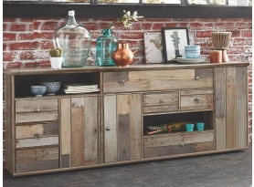 - dekor korpusu / prednéj plochy: vintage optika oprýskaných drevených lát (hnedo-šedá)